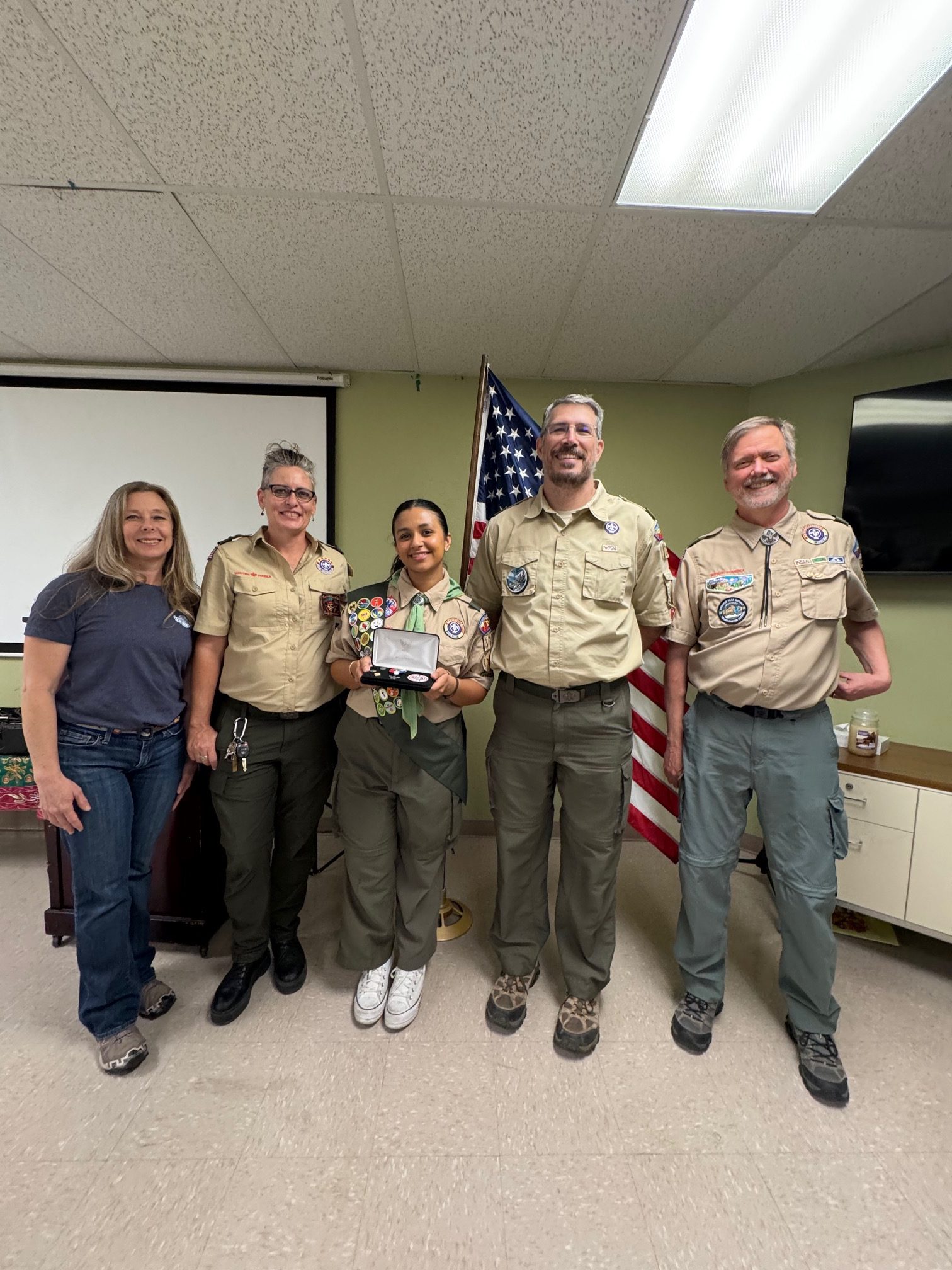 Congratulations to Anya, who on April 9 passed her Eagle Board of Review and became Troop 3323’s sixth Eagle Scout! Anya served as our SPL, Outdoor Ethics Guide, and Junior Assistant Scoutmaster, among many other contributions. She’s been a great example to younger scouts with her encouragement and support. And she completed a really amazing Eagle Project, creating a calm room for youths at MIKID behavioral health organization. We are so proud of Anya!!