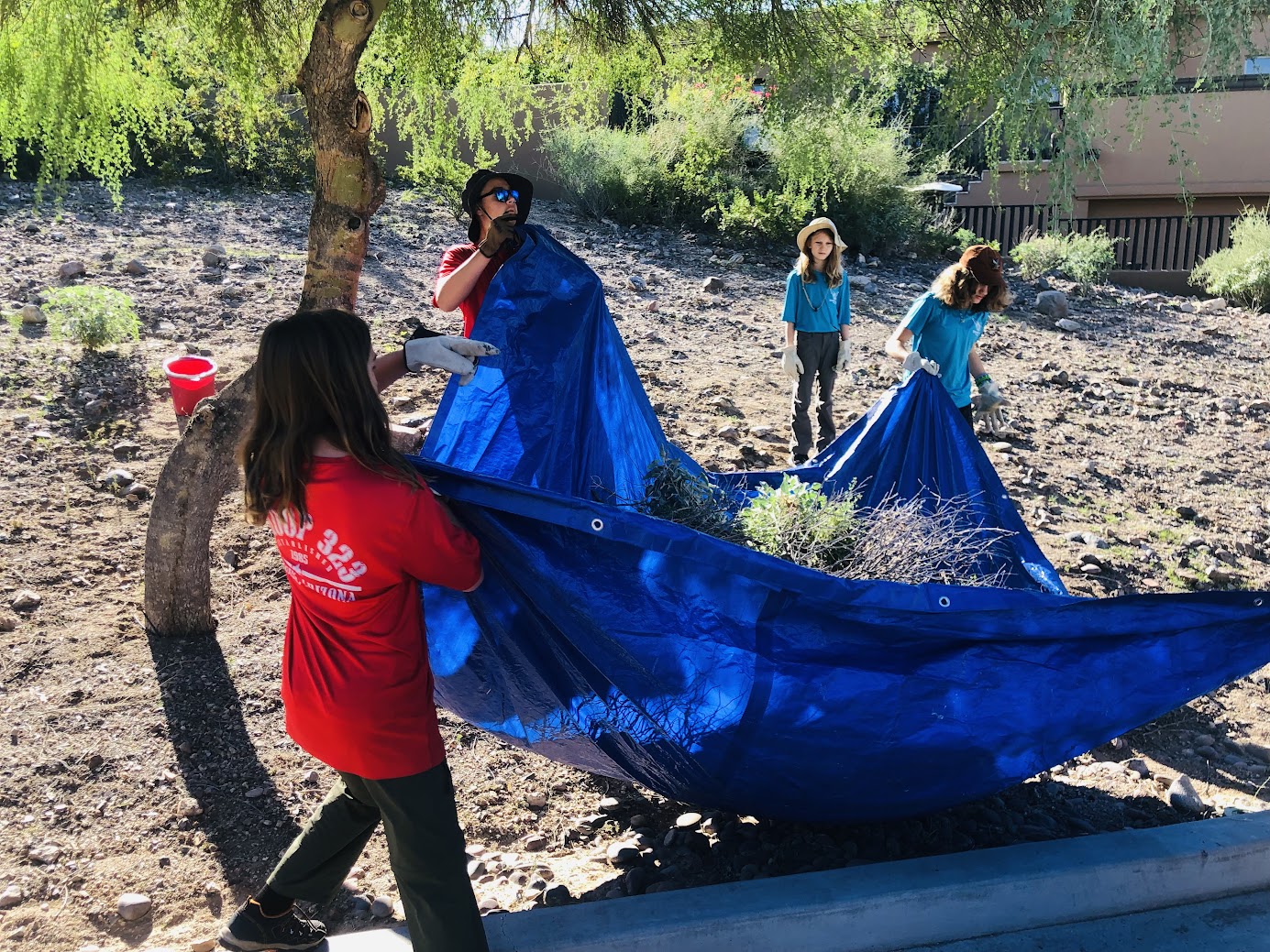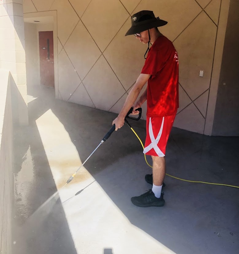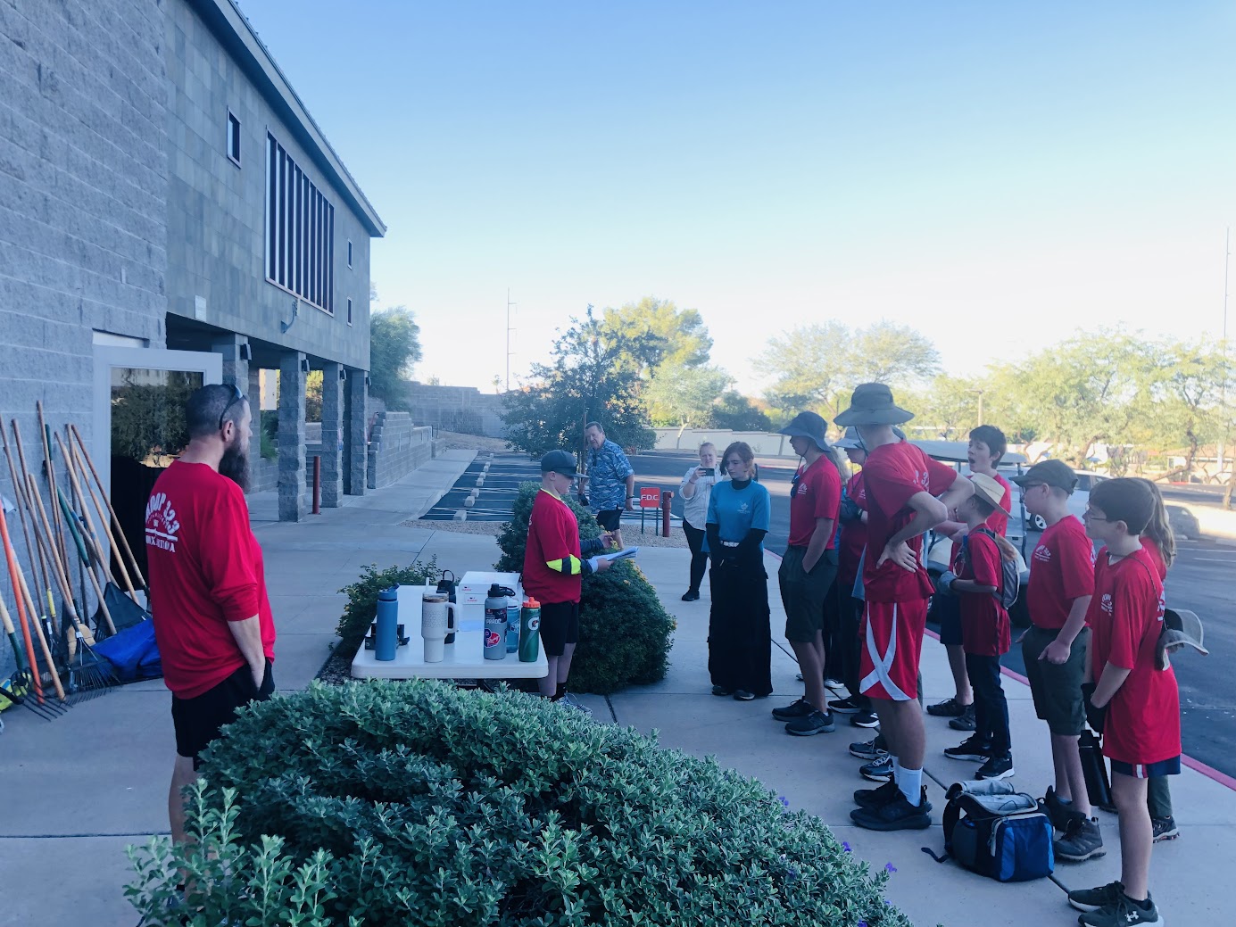 On October 25, our scouts assembled at All Saints Lutheran Church, our charter organization, for a service project. Our scouts worked together under the leadership of Sam to pick weeds, trim bushes, clean the storage room, and power wash the sidewalk. They were rewarded for their efforts with appreciation and donuts.