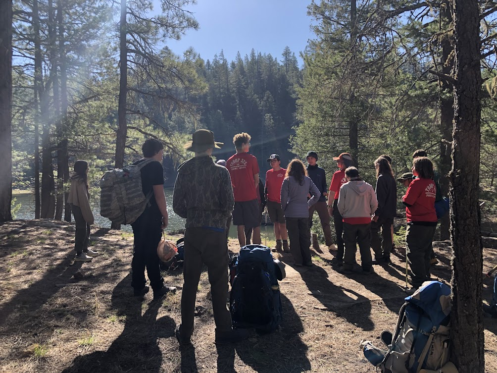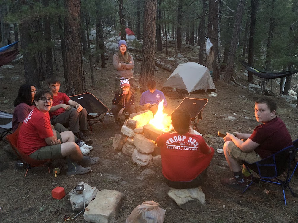 On May 18th, our scouts started a 1.7 mile hike (3.4 miles round trip) to our campsite at Knoll Lake, using the Babe Haught Trail No. 88, while senior scouts took a more difficult hike, (8.2 miles round trip) starting at the Tonto fish hatchery. When we arrived the scouts set up camp, and had fun trying to catch fish in a small stream nearby! After cooking dinner, the scouts started a fire with sticks they had collected, before going to sleep for the night.